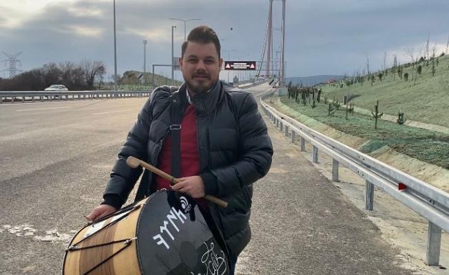 Tekirdağ’dan Çanakkale’ye gelen davul virtüözü Ahmet Çelik, 1915 Çanakkale Köprüsü’nden Avrupa yakasından davul çalarak ve Çanakkale Türküsünü …