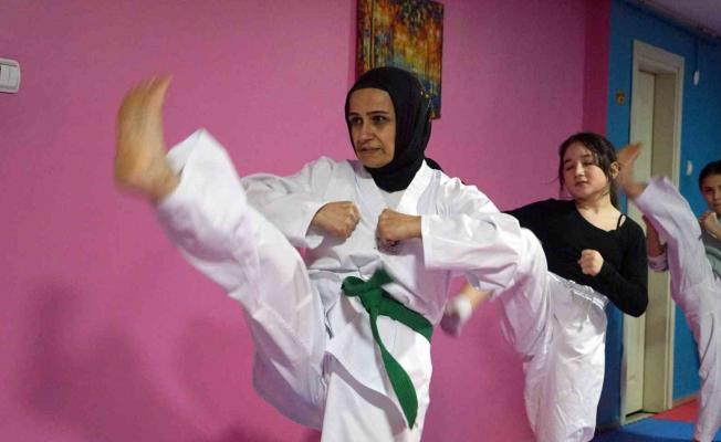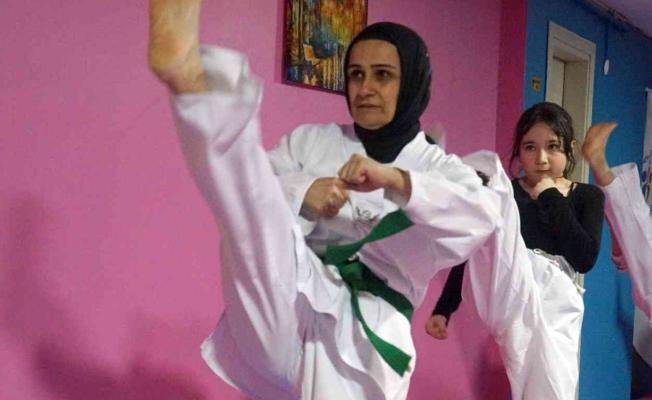 48 yaşında tekvandoya başladı, 2 çocuğuyla antrenman yapıyor