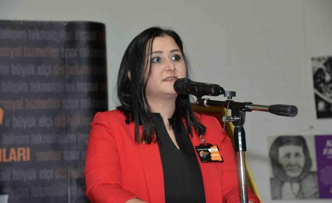 bıraktığını belirterek, “Biz Adanalıyız, biz Adana’dayız kadınlarız biz hem anne, hem evlat, hem eş, hem arkadaş, hem vatandaş ama aynı aynı zamanda genç bir öğretmeniz, bankacıyız, mühendisiz, avukatız, sporcu, sanatçıyız, farklı sektörlerdeyiz ve beyin gücü ile biz de varız” diye konuştu.