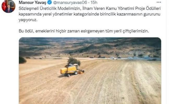 ABB Başkanı Mansur Yavaş birincilik ödülü ile ilgili olarak sosyal medya hesapları üzerinden yaptığı paylaşımda, “Sözleşmeli üreticilik modelimizin ‘İlham Veren Kamu Yönetimi Proje Ödülleri’nde yerel yönetimler kategorisinde birincilik kazanmasının gururunu yaşıyoruz. Bu ödül, emeklerini hiçbir zaman esirgemeyen tüm yerli çiftçilerimizin” ifadelerine yer verdi.
