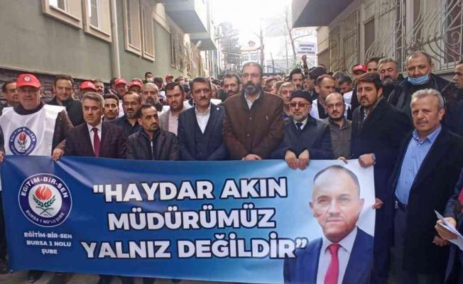 Eğitim Bir Sen Bursa 1 No’lu Şube Başkan Vekili Adil Yazıcıoğlu yaptığı açıklamada, “Mesleki hayatı boyunca milli eğitimde önemli görevlerde bulunmuş, çalıştığı tüm kurumlarda başarılı çalışmalarıyla öne çıkmış, devletine ve milletine kutsal meslek olan öğretmen ve yönetici olarak hizmet etmiş, amirleri tarafından başarıları taltif edilmiş, tek derdi eğitim öğretim ve öğrencileri olan Müdürümüz Haydar Akın’ın görevden alınmasını kabul etmiyoruz.