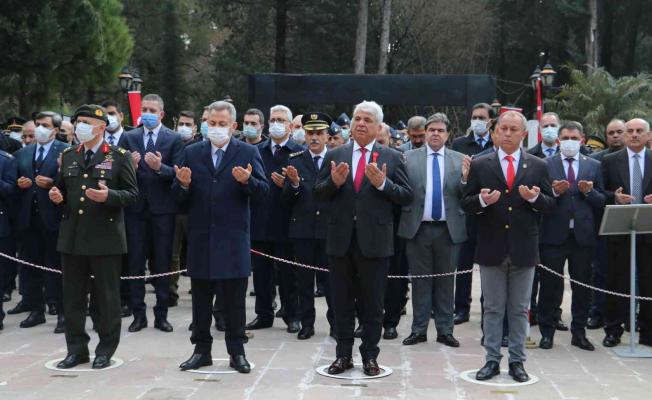 Adana’da Asri Mezarlık Şehitliği’nde anıta çelenk bırakılmasıyla başlayan törenin ardından saygı duruşunda bulunuldu, saygı atışı yapıldı, İstiklal Marşı okundu.