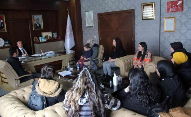 Ağrı İl Milli Eğitim Müdürü Hasan Kökrek, Doğubayazıt Şehit Polis Fethi Sekin Mesleki ve Teknik Anadolu Lisesince hazırlanan ve Türkiye Ulusal Ajans’ı tarafından kabul edilen “Benim Altın Bileziğim Mesleğim” isimli Erasmus+ projesi kapsamında İspanya’ya gitmeden önce öğrencileri makamında kabul etti.