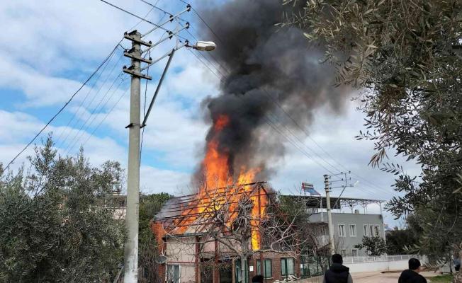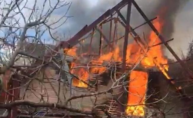 Bursa’da iki katlı ahşap ev, çıkan yangında kullanılamaz hale geldi. O anlar saniye saniye kaydedildi.