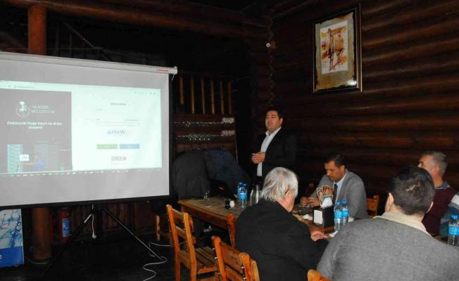 Başkan Akkaya’nın konuşmasının ardından Akşehir Belediyesi İnsan Kaynakları ve Eğitim Müdürlüğü personeli Emin Çoban tarafından Elektronik Proje Kayıt ve Arşiv Sistemi ile bilgi verildi. Sistemin yazılımcısı Selçuk Özdemir’de uygulamalı olarak sisteme nasıl kayıt olunacağını, projelerin sisteme nasıl yükleneceği hakkında katılımcılara detaylı bilgiler verdi. Konya ili genelindeki merkezdekiler hariç ilçe belediyeleri arasında ilk olarak Akşehir Belediyesi tarafından başlatılan ve 1 Nisan’dan itibaren faaliyete geçecek sistem ile mimarlar ve müteahhitler projelerini elden değil, dijital ortamda sisteme yükleyerek proje ile ilgili aşamaları ve durumu an ve an takip edebilecekler. Sistemin hem zaman açısından hem de proje ile ilgili aşamaların takibi açısından önemli olduğu belirtildi. Toplantıda Akşehir genelindeki imar durumlarını ve yapı durumunu gösteren E-İmar sayfasının da son aşamaya getirildiği ve bunun nasıl kullanacağı hakkında da bilgiler verildi. Akşehir Belediyesi İmar ve Şehircilik Müdürlüğü personeli Kadir Ceran ve Emrah Yaşar da, 18. Madde uygulaması yapılmış ve yapılacak alanlarla ilgili bilgilendirmede bulundu.