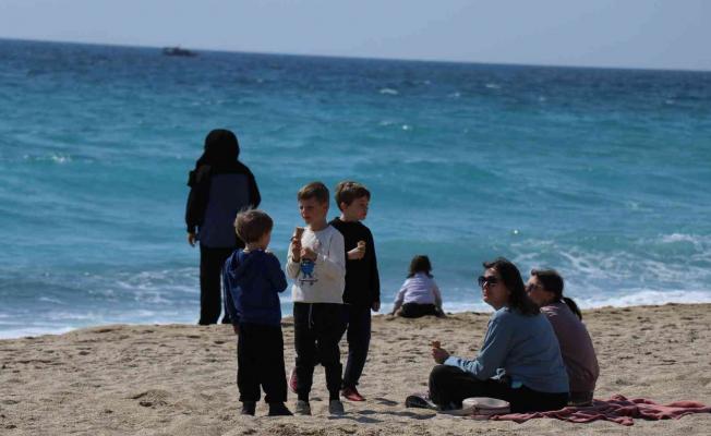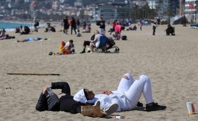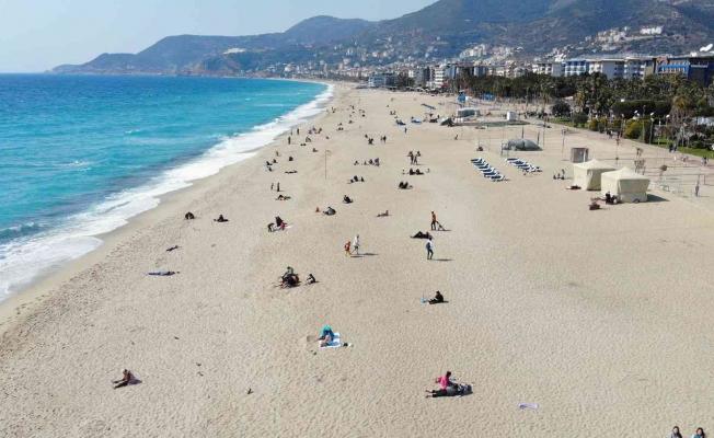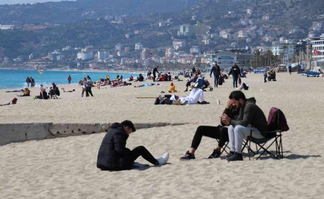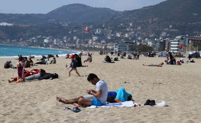Alanya’da güneşli havayı fırsat bilenler plaja akın etti