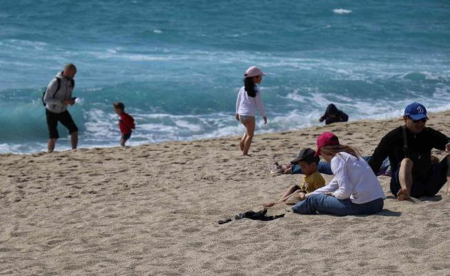 Antalya’da soğuk havaların ardından güneşli havayı fırsat bilenler plaja akın etti.