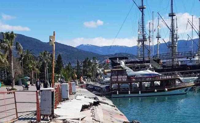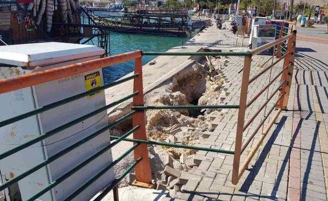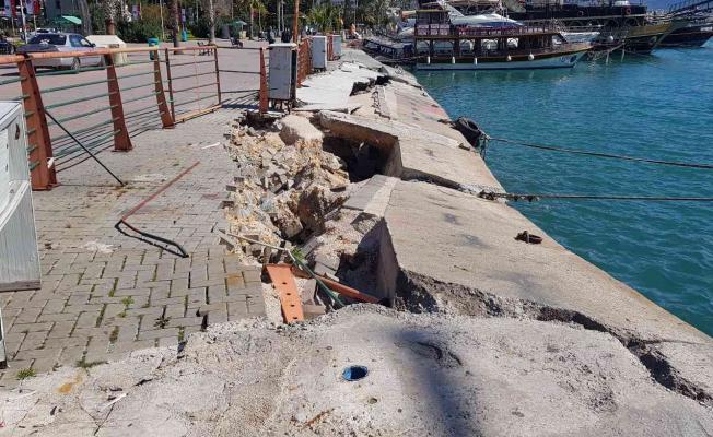 Antalya’nın Alanya ilçesinde turizmin en gözde mekanı olan İskele Rıhtım’da son yaşanan küçük çaptaki deprem ve fırtınaların ardından çökmeler meydana geldi. Yaşanan depremler ve sonrasında fırtınalar sebebiyle oluşan dev dalgalarla çöken iskelenin bir an önce yapılmasını isteyen gezi teknesi sahipleri, yetkililere seslendi.
