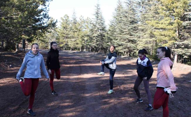 Türkiye Atletizm Federasyonu tarafından 26 Şubat’ta Adana’da Okullar Atletizm Kros Türkiye Finalleri düzenlendi. Genç Kızlar kategorisinde Türkiye birinciliği elde eden Milli Takım Antrenörü Bülent Uzun’un öğrencileri, antrenmanlarına Eskişehir Kent Ormanı’nın zirvesinde tüm hızıyla devam ediyor. Ayça Fidanoğlu başta olmak üzere Selen Canlı, Elifnaz Köseoğlu ve Bade Fidanoğlu’nun bulunduğu 4 kişilik ekip, soğuk hava koşullarına rağmen açık arazide çalışarak yaklaşan yarış için gün sayıyor. 22 Nisan’da Slovakya’da yapılacak olan Dünya Liselerarası Kros Şampiyonası’nda Türkiye Atletizm Milli Takımı’nı ilk defa temsil edecek olan Ayça Fidanoğlu, antrenörleri eşliğinde sıkı çalışarak hedeflerine koştuklarını belirtti.