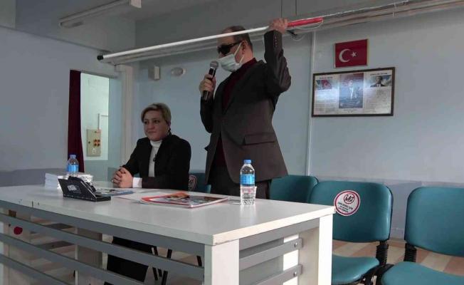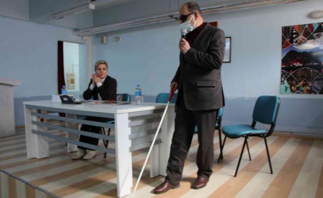 Dünya nüfusunun yüz 15’i’nin, Türkiye’de ise nüfusun yüzde 13’ünün engelli olduğunu hatırlatan Altı Nokta Körler Derneği Amasya Şubesi Başkanı Musa Demiryarar da günlük hayatta kullandıkları baston ve diğer gereçler konusunda bilgiler aktardı. Bir görme engelliye yolda yürümesi için yardım ederken nelere dikkat edilmesi gerektiğine vurgu yaptı.