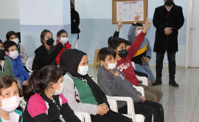 Arslan ve Demiryarar, programın sonunda öğrencilerle buluşmalarına imkan tanıyan okul müdürü Ayla Keskiner’e görme engellilerle diğer bireyler arasındaki işletişimi kolaylaştırmak için oluşturulan kılavuz kitaptan hediye ettiler.