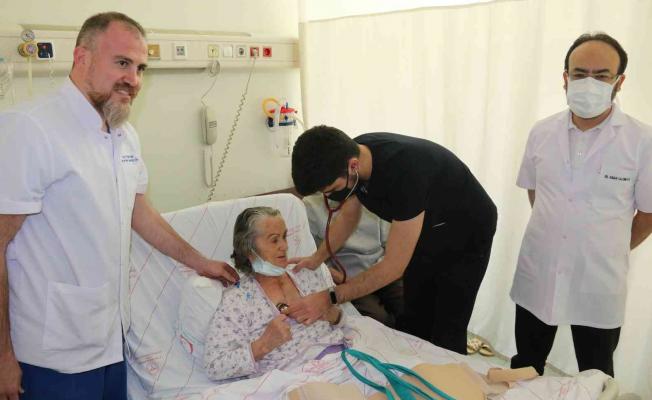 Antalya’da yaşayan emekli hemşire Azize Tosun (74) 10 gün önce göğüs ve sırt ağrısına eşlik eden; yüzünde, boynunda ve kollarında ani başlayan şişlik şikâyeti ile Antalya Eğitim ve Araştırma Hastanesi acil servisine başvurdu. Acil serviste yapılan ilk tetkiklerin ardından 30 milimetre olması beklenen aort damarının 77 milimetreye kadar yükseldiği ve yırtılarak balonlaştığı tespit edildi. Hastanın öyküsünde bir buçuk sene önce başka bir merkezde 4 damar koroner bypass ameliyatı geçirdiğini öğrenen Kalp ve Damar Cerrahisi Öğretim Üyesi Doç. Dr. Ali Ümit Yener ve Doç. Dr. Adnan Yalçınkaya, hazırlıkların ardından hastayı hemen ameliyata aldı. Yaklaşık 5 saat süren ameliyatta hastanın 37 derece olan vücut ısısı 26 dereceye kadar düşürüldü. Aort damarının yırtık kesimi, sunni damar ile değiştirildi. Ameliyattan sağlıklı bir şekilde çıkan kadın, 2 gün yoğun bakımda kaldıktan sonra servise alındı. Yarın ise taburcu olması bekleniyor.