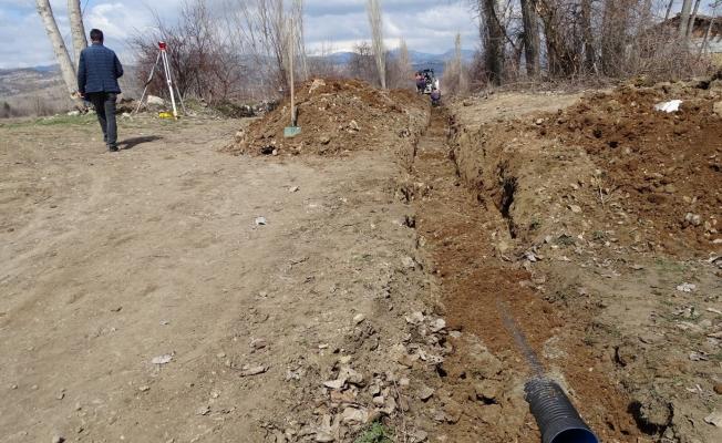 Arazi yolundaki köprünün altında biriken suların tahliyesi için çalışma başlatan Belediye Belediyesi Fen İşleri ekiplerince yaklaşık 100 metre koruge boru döşemesi gerçekleştirildi.