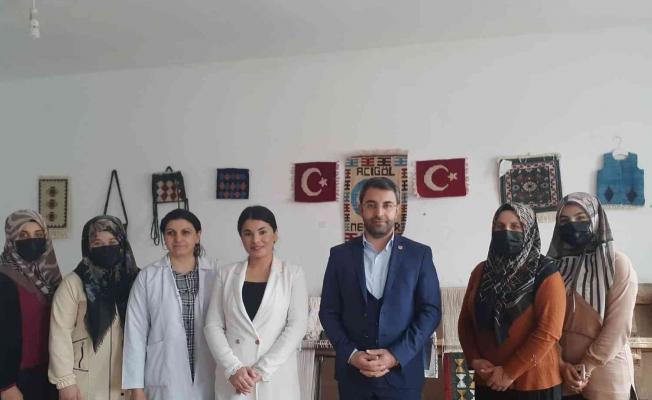 Halk Eğitim Merkezi Halı Dokuma Kursunu ziyaret eden Acıgöl Kaymakamı Emine Karataş Yıldız, asırlık tezgâhın başına geçerek kursiyerler ile birlikte halı dokudu.