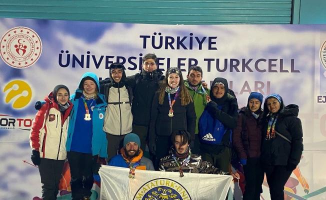 Atatürk Üniversitesinde eğitimlerini sürdüren ve aynı zamanda Türkiye’yi ulusal ve uluslararası alanda temsil eden sporcular, yeni başarılara imza atmaya devam ediyor. Bu kapsamda; 13-17 Mart 2022 tarihlerinde Palandöken Kayak Merkezinde düzenlenen Kış Spor Oyunlarında Kayak Alp Disiplini, Snowboard, Kar Voleybolu, Buz Tırmanışı ve Kızak branşlarının tamamında yarışan Atatürk Üniversiteli sporcular toplam 26 madalya ile önemli bir başarı elde etti.