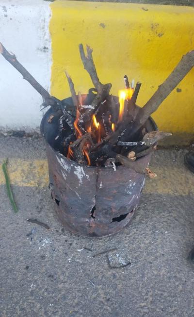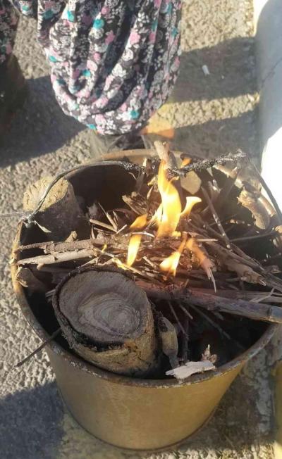 Aydın’da soğuk ve soğuk havadan havadan pazarcı esnafı, tezgahlarına yan koydukları tenekelerde ateşlerine yakarak ısınıyor.