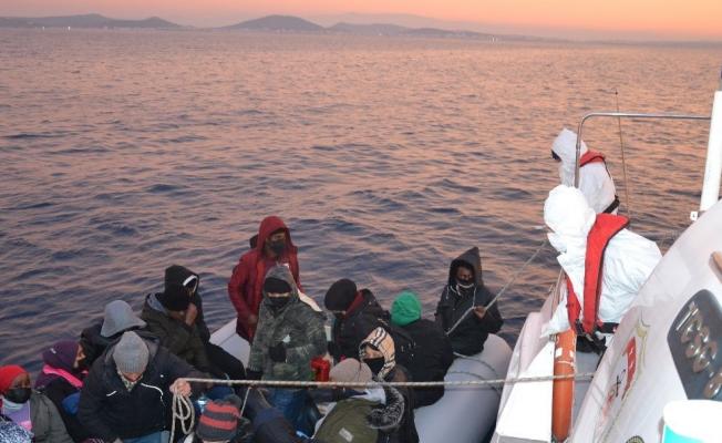Balıkesir’in Ayvalık ilçesinde, Yunanistan’ın Midilli Adası’na gitmek isterken, Yunanistan unsurlarınca Türk karasularına itilen 26 düzensiz göçmen kurtarıldı.