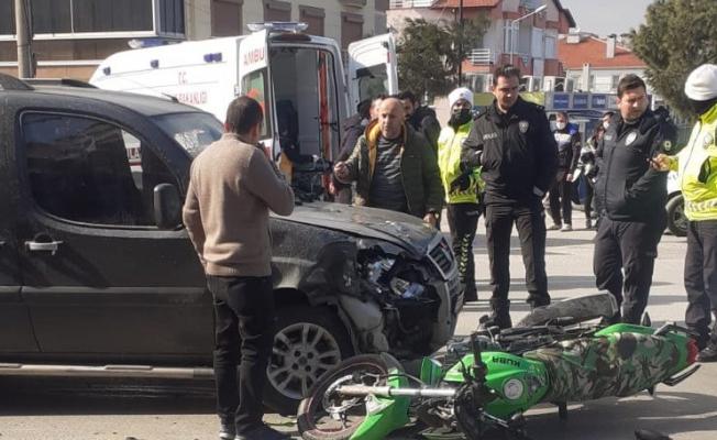 Ayvalık’ta motosiklet ticari araçla çarpıştı: 2 yaralı