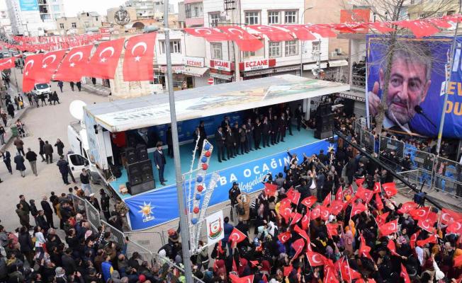 Memleketi Viranşehir ilçesi Cumhuriyet Meydanı’nda düzenlenen mitingde konuşan Hazine ve Maliye Bakanı Nureddin Nebati, kente yatırımların devam edeceğini, hiç kimsenin bu ülkede yatırım yapacak girişimcilerin önünü kesip engel koyamayacağını vurguladı. Bakan Nebati, “Yatırımcımızın önünü kesenlerle mücadele etmeyi biliriz. Bürokratik engeller çıkaranların önünde biz duracağız. Sayın Cumhurbaşkanımızın bürokratik oligarşiye olan savaşında en önde giden akıncılar olarak bizi görebilirsiniz. Bu engellerin önünde biz dururuz. Gerek kamu-özel iş birliği projeleriyle, gerek doğrudan yatırımlarla biz bunu yapacağız” dedi.