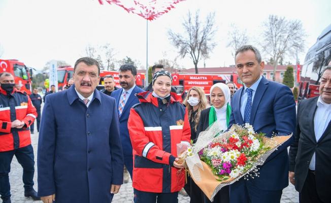 Malatya Büyükşehir Belediyesini ziyaret eden Milli Eğitim Bakan Prof. Dr. Mahmut Özer, ziyaret öncesinde Büyükşehir Belediyesi tarafından araç filosuna eklenen 5 adet itfaiye aracının hizmete alım törenine katıldı.