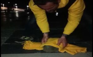Muğla’nın Marmaris ilçesinde bir bara kirpi girdi. İşletme sahibi kirpiyi ayak altında ezilmesin diye battaniye ile alıp devriye gezen yunus …