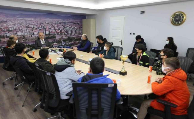 Derince Belediye Başkanı Zeki Aygün, 2021-2022 Ortaokullar Arası Küçük Erkekler Futbol Şampiyonası’nda il birincisi olan Dumlupınar Ortaokulu öğrencilerini tebrik etti.