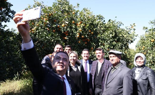 Başkan Böcek’in Kumluca programı kapsamında, daha önce Tarımsal Hizmetler Dairesi Başkanlığı tarafından faydalı böcek salınımı yapılan Çiftçi Muhammet Arıcan’ın portakal bahçesini ziyaret etti.