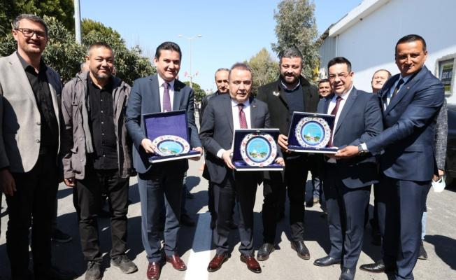 Daha sonra Kumluca Sanayi Sitesi Başkanı Durmus Tomaç da sanayi sitesinin 20 yıldır süre gelen asfalt sorununu sıcak asfalt ile çözdüğü için Büyükşehir Belediye Başkanı Muhittin Böcek’e teşekkür plaketi verdi.