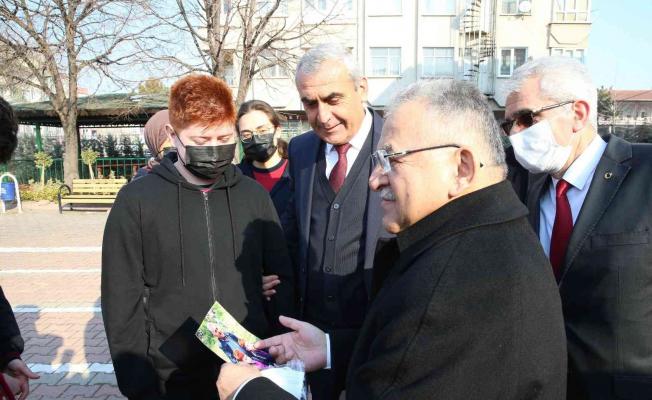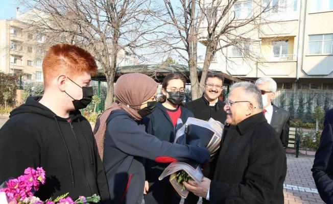 Okullarda düzenlenen ‘Kariyer Günleri’ etkinliklerinde öğrencilerle buluşarak tecrübelerini paylaşmaya devam eden Başkan Büyükkılıç’ın bu seferki durağı çiçeklerle karşılandığı Nuh Mehmet Baldöktü Anadolu Lisesi oldu. Melikgazi İlçe Milli Eğitim Müdürü Hacı Kaya, okul yöneticileri, öğretmen ve öğrenciler tarafından okul bahçesinde çiçeklerle karşılanan Başkan Büyükkılıç, okul girişindeki ziyaretçi defterini imzaladı. Büyükşehir Belediye Başkanı Dr. Memduh Büyükkılıç’a bir öğrenci tarafından fotoğraf sürprizi yapıldı. Nuh Mehmet Baldöktü Anadolu Lisesi 10. sınıf öğrencisi Ünal Bulu, 8 yıl önce ikiz kardeşi ile birlikte Pınarbaşı’daki piknik esnasında Başkan Büyükkılıç ile çekindiği fotoğrafı göstererek sürpriz yaptı. Sürprizden dolayı memnuniyet duyan Büyükkılıç, 11. sınıf öğrencisi Bulu’ya fotoğrafla ilgili sorular sorarak anılarını tazeledi. Kariyer Günleri buluşmasında Büyükkılıç, Kayseri’yi tanıtan ve Kayseri Büyükşehir Belediyesi’nin icraatlarının anlatıldığı video gösteriminin ardından sohbet ortamında yaptığı konuşmasında eğitimin ve kariyerin önemine vurgu yaparak öğrencileri kendilerini geliştirmeye davet etti. Konuşmasında böyle bir şehrin insanı olmanın, en önemlisi de hayırseverler şehri olarak anılmanın adeta gururunu yaşadığını dile getiren Büyükkılıç, “Burada faaliyetleri izleyince ne kadar çok şey yapılmış diye bende hayranlıkla izledim. Bizim öğretimizde iş değişikliği ile dinlenin diye yazar. O açıdan bir işten diğer işe geçince rahatlıkla dinlenirsiniz” diyerek şunları paylaştı;