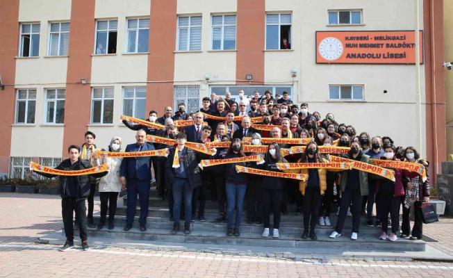 Öğrencilere Yukatel Kayserispor kaşkolu dağıtan ve Erciyes’e ve sarı kırmızılı takımın karşılaşmalarına davet eden Başkan Büyükkılıç, buluşma sonunda öğretmen ve öğrencilerle fotoğraf çekindi.