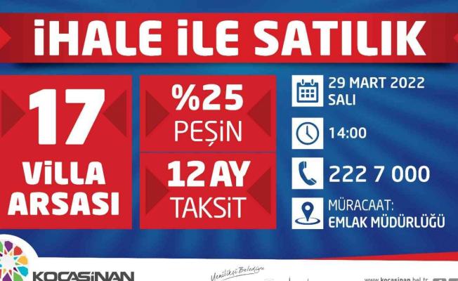 Kocasinan Belediyesi, ilçenin farklı noktalarında bulunan 17 adet villa arsasını, yüzde 25 peşin ve 12 ay taksit seçeneği ile 29 Mart Salı günü …