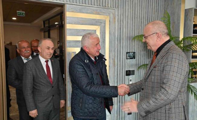Manisa Büyükşehir Belediye Başkanı Cengiz Ergün, Manisa Esnaf ve Sanatkarlar Odaları Birliği Başkanı Hasan Geriter ve birliğe bağlı esnaf …
