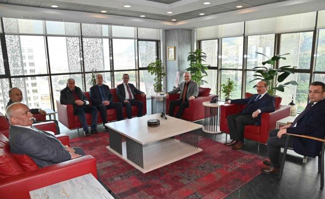 Manisa Büyükşehir Belediye Başkanı Cengiz Ergün, Manisa Esnaf ve Sanatkarlar Odaları Birliği Başkanı Hasan Geriter ve birliğe bağlı esnaf …