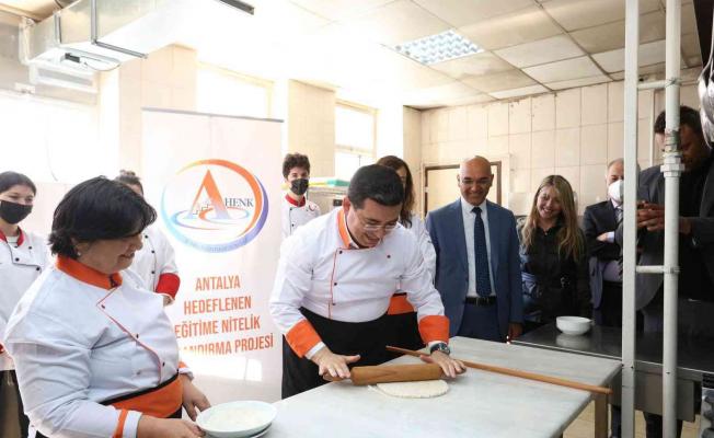Gençlik Buluşmaları’nda Falez Mesleki ve Teknik Anadolu Lisesi’ne konuk olan Kepez Belediye Başkanı Hakan Tütüncü, turizme kalifiyeli eleman yetiştiren okulun Yiyecek İçecek Hizmetleri Bölümünde mantı hamuru açtı.