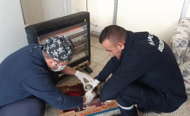 Karşıyaka Mahallesi’nde gelen ihbar üzerine veteriner ekibi olay yerine gitti. Burada yeni doğum yapmış ve soğuktan 3 yavrusunu kaybeden anne kedi ile 2 yavrusunu alan ekipleri, hemen kliniğe götürdü. Burada muayeneleri yapılarak sobanın önünde ısınmaları sağlanan anne kedi ve yavruları, ekipleri müdahalesiyle hayatta kaldı.