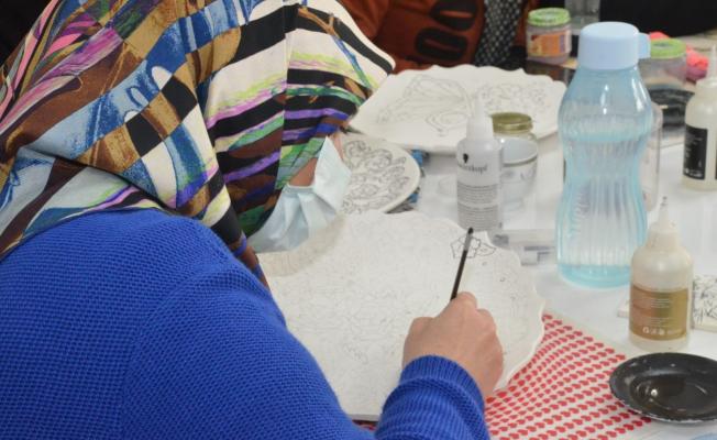 Kırıkkale Belediyesi tarafından mahalle konaklarında açılan çini kursu sayesinde üretilen ürünler, kadınların en ekonomisine katkı sağlıyor.