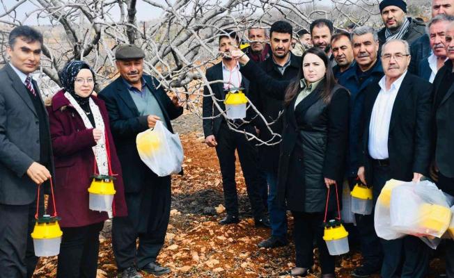 Adıyaman’ın Besni ilçesinde yoğun olarak bulunan Antepfıstığı bahçelerinde kullanılması için dal güvesine karşı tuzak dağıtıldı.