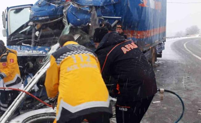 Çarpışmanın etkisiyle tır şarampole yuvarlanmaktan kıl payı kurtulurken kamyon şoförü araçta sıkışarak ağır yaralandı.