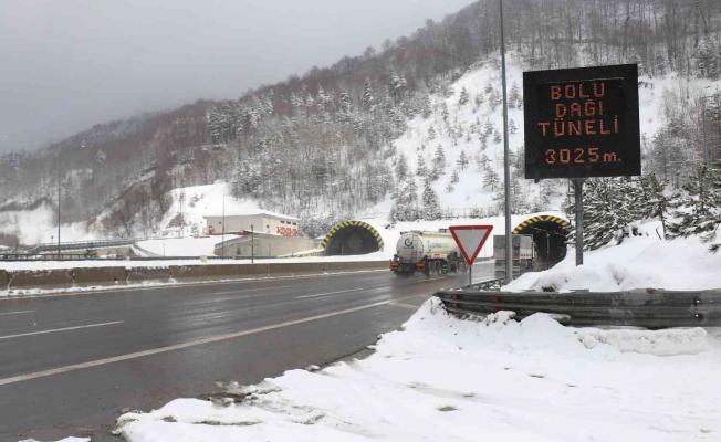 Karayolları ekipleri, Bolu Dağı güzergâhında kar yağışının artmasına karşın hazır şekilde bekletiliyor. Sürücüler, takip mesafelerini korumaları ve hız yapmamaları konusunda ışıklı tabelalar ve polis ekipleri tarafından uyarılıyor.
