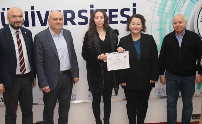 Başarılı olan öğrenciler sertifikalarını Rektör Yardımcıları Prof. Dr. Beyhan Bayhan ve Prof. Dr. Ayşe Bedeloğlu’nun elinden aldı.