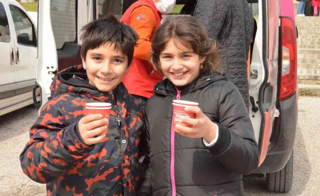 Ailesiyle birlikte ziyarete gelen Özgür Ali Özkan ise “Başkanımızın bu soğuk havada, bölgemize has olarak verdiği kaynar içeceği için teşekkür ediyoruz. Bolca minnettarız, şükranlarımızı sunuyoruz” diye konuştu.