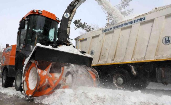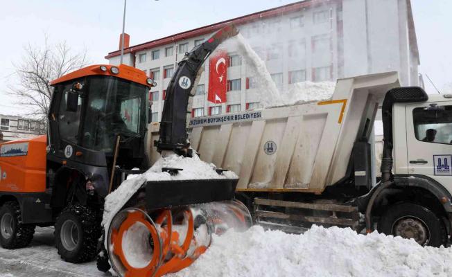 Erzurum Büyükşehir Belediyesi’nin karla mücadele ekipleri, elverişsiz hava şartları ve yoğun kar yağışının yaşandığı şehri baştan aşağı kardan temizliyor.