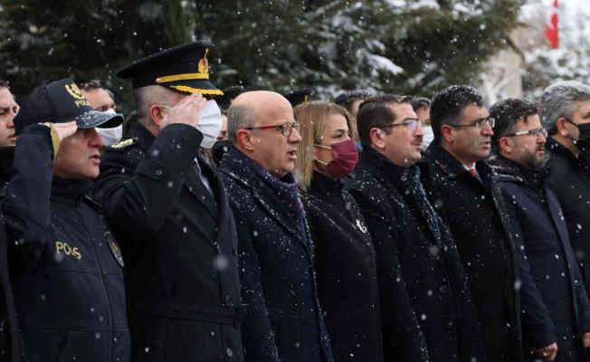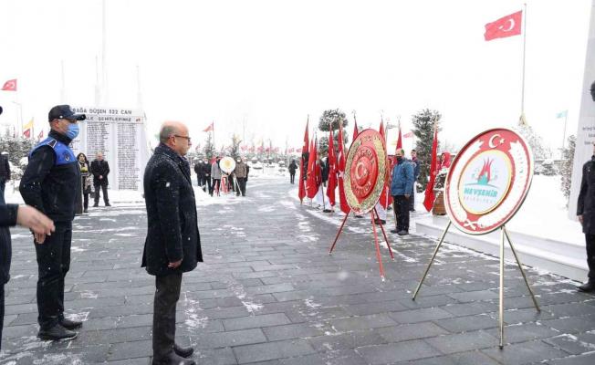Törenin ardından protokol üyeleri, Kaldırım Mezarlığında bulunan şehit kabirlerini ziyaret ederek karanfil bıraktı.