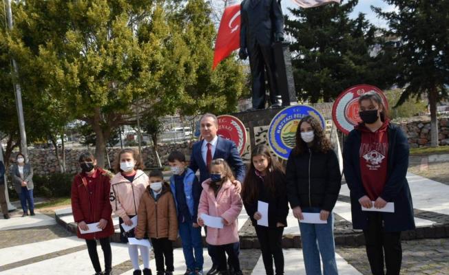 Törende daha sonra İlçe Milli Eğitim Müdürlüğü tarafından ’18 Mart Çanakkale Zaferi ve Şehitleri Anma’ temasıyla düzenlenen resim, şiir ve kompozisyon yarışmasında dereceye giren öğrencilere ödülleri Kaymakam Bozdemir ve Başkan Çetinkaya tarafından verildi.