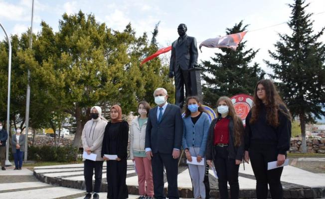 Atatürk Anıtına çelenk sunulması, saygı duruşu ve İstiklal Marşının okunmasıyla başlayan törende, günün anlam ve önemini belirten konuşmayı Jandarma Astsubay Çavuş Burak Ak yaptı. Ak, “Bugün burada ülkemizin bağımsızlığı, bütünlüğü ve cumhuriyet uğruna canlarını hiçe sayarak ölüme koşan, yurdumuzun ve dünyanın dört bir köşesindeki şehitliklerde ve bilinmeyen yerlerde kefensiz, bazıları da mezar taşı olamadan ama görevini yapmış olmanın huzuru içerisinde yatan tüm aziz şehitlerimizi minnetle, onurla, gururla ve heyecanla anmak için toplandık” dedi.