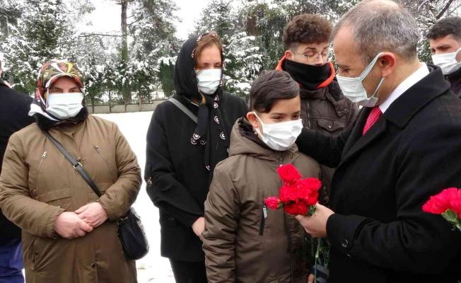 Konuşmanın ardından protokol, şehit mezarlarına karanfil bırakıp şehit yakınlarıyla sohbet etti.