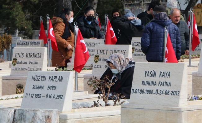 Törende, Kur’an Tilâveti okunması ve şehit defterliğinin imzalanmasının ardından şehit mezarlıkları ziyaret edilerek kırmızı ve beyaz karanfil bırakıldı. Günün anlam ve önemi kapsamında şehit defterliğine yazdıklarını okuyan Vali Yardımcısı Abdullah Dölek, program sonunda kabirleri ziyaret ederek karanfil bırakıp, şehit aileleriyle sohbet etti.