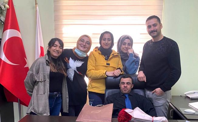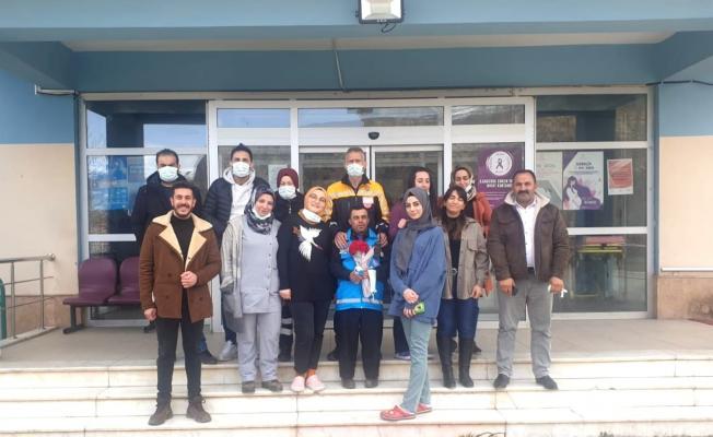 Sağlık çalışanları, sempatik tavırlarıyla ilçe halkının sevgisini kazanan down sendromlu Kemal Karakoç’a çeşitli ikramlarda bulunarak çiçek takdim etti. 37 yaşındaki Kemal Karakoç, ziyaretinde mutlu anlar yaşadı.