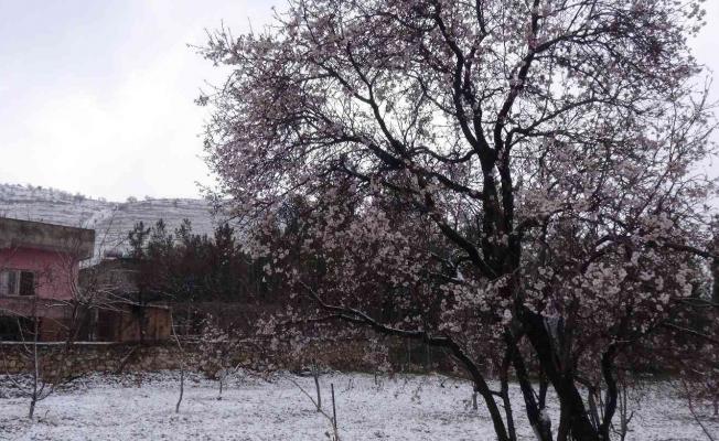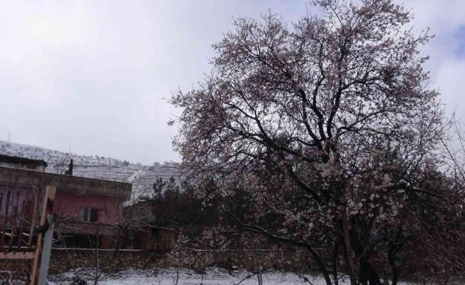 Batman’ın Gercüş ilçesinde çiçek açan badem ağaçları kar altında kaldı.