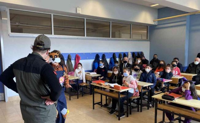 Orman Haftası kapsamında Sarıyer’de bir okulda çocuklara doğa sevgisini aşılamak için Çat Kapı Orman Tiyatrosu tarafından gösteri yapıldı …